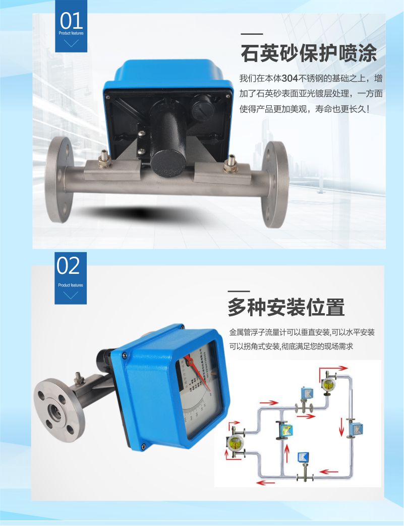 金屬管浮子流量計(jì)是工業(yè)自動(dòng)化過(guò)程控制中常用的一種流量測(cè)量?jī)x表,它具有壓損小,檢測(cè)范圍大(量程比10:1),使用方便等特點(diǎn),它可用來(lái)測(cè)量液體,氣體以及蒸汽的流量,多年來(lái)金屬管浮子流量計(jì)的各種優(yōu)良性能和可靠性,以及較好的性能價(jià)格比廣泛受到了石化、鋼鐵、電力、冶金、輕工等行業(yè)的青睞.